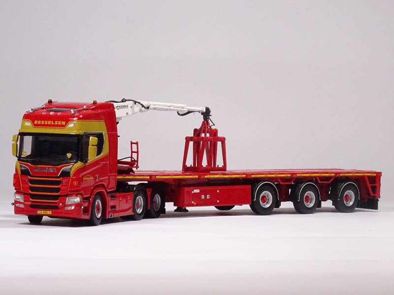 6x4 trekker met KWB vlakke oplegger en Kennis laadkraan